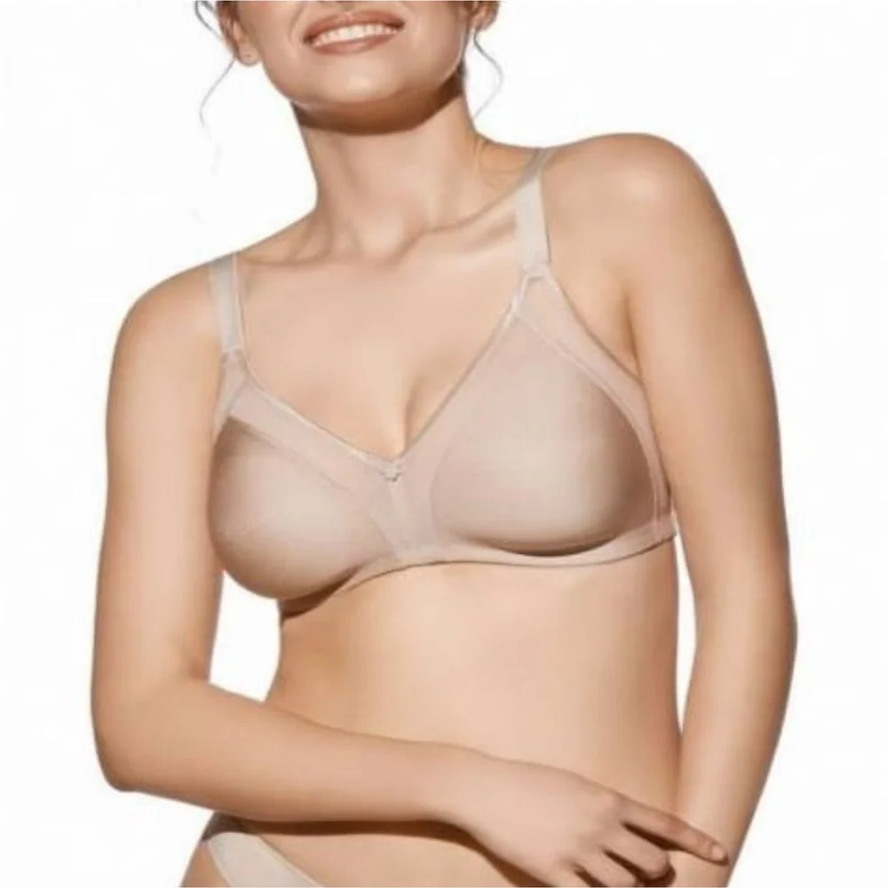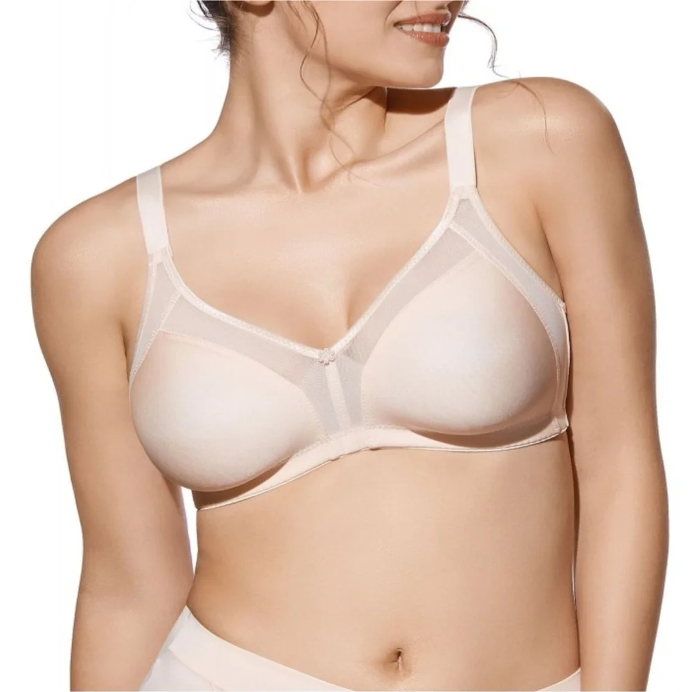 Sujetador sin aros con doble capa de microfibra satinada y detalle en tul.